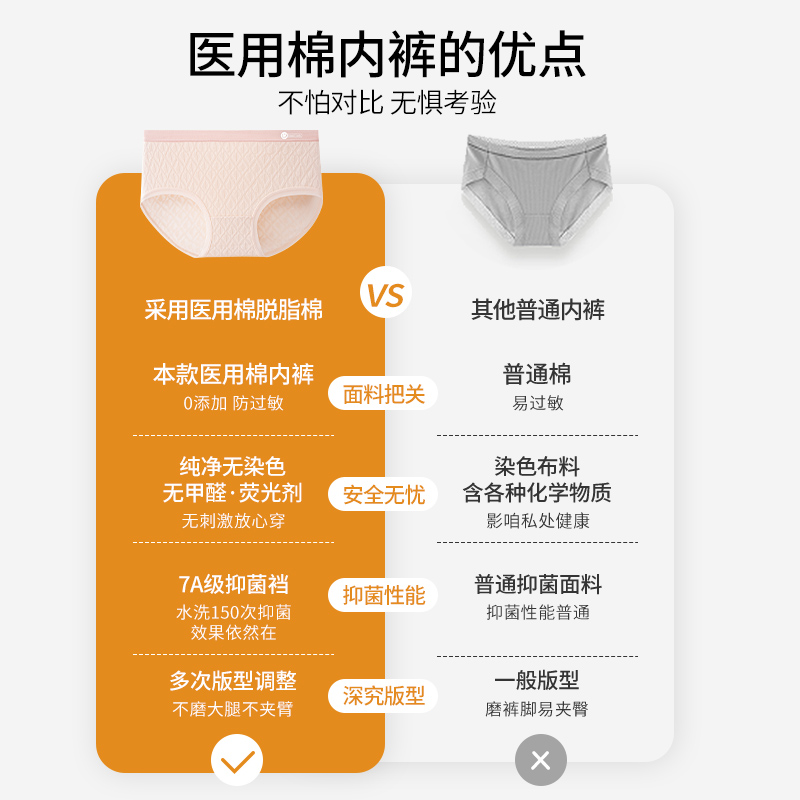 猫人女士内裤 纯棉抗菌100%全棉裆无痕a类棉医用级女生透气三角裤