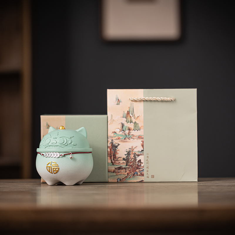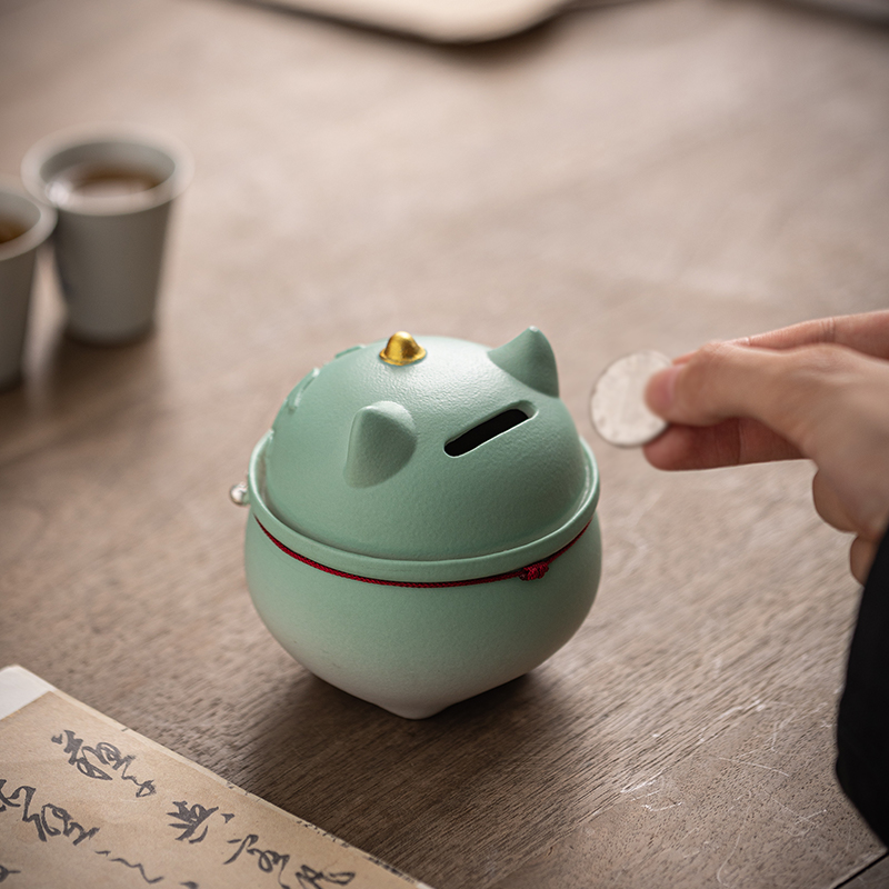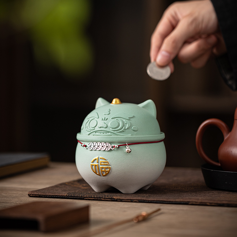 创意国潮宫廷风招财醒狮存钱罐家用储蓄罐只进不出密封罐陶瓷摆件