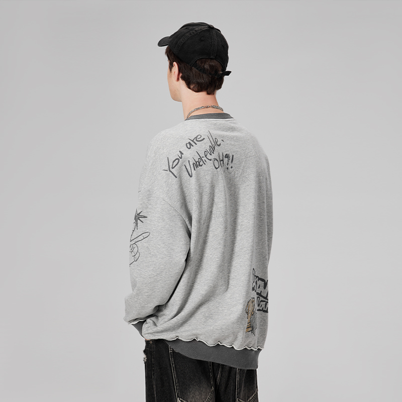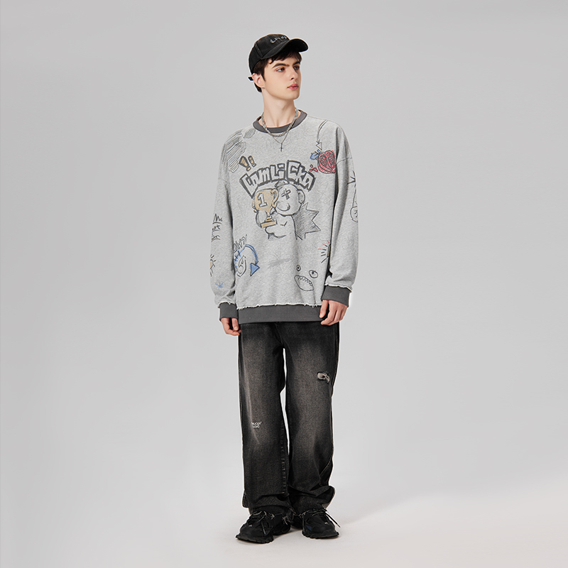 LAMLICKA潮流卡通印花秋季 圆领卫衣男原创街头休闲百搭上衣宽松