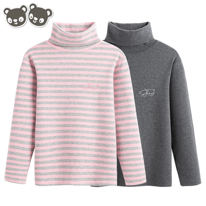 女童高领打底衫 T恤儿童白色上衣女大童秋衣 纯棉加绒加厚保暖长袖