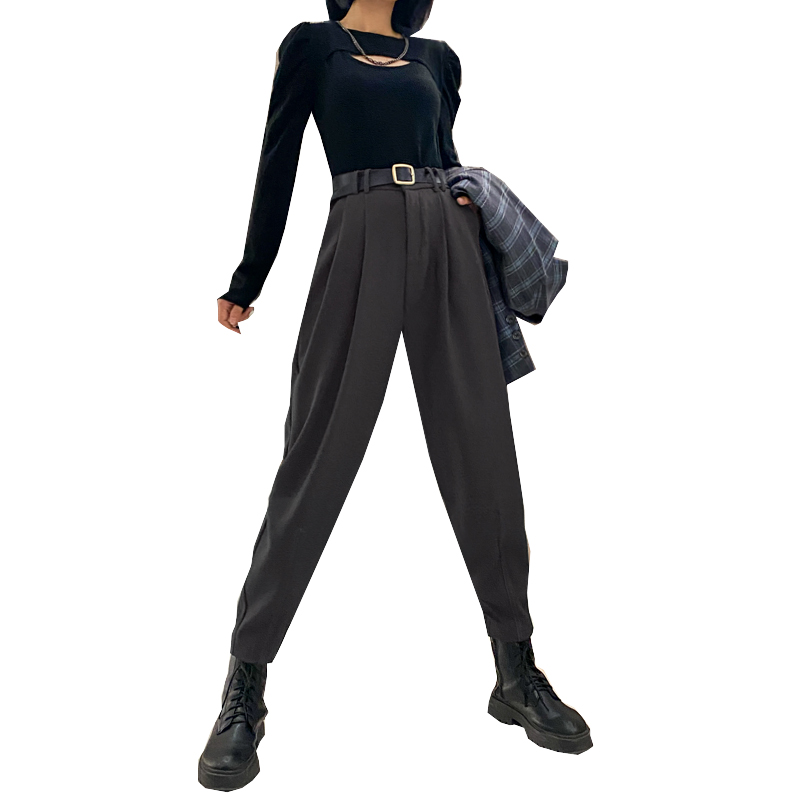 萝卜裤 百搭休闲九分烟管小脚西装 子 女加绒加厚秋冬新款 高腰哈伦裤