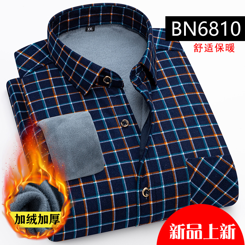 休闲爸爸装 冬季 中青年加绒加厚衬衫 长袖 条纹上衣 保暖内衣格子男士