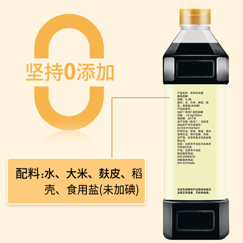 老才臣0添加米醋1L家用厨房烹调醋调味醋零添加食醋饺子凉拌蘸料