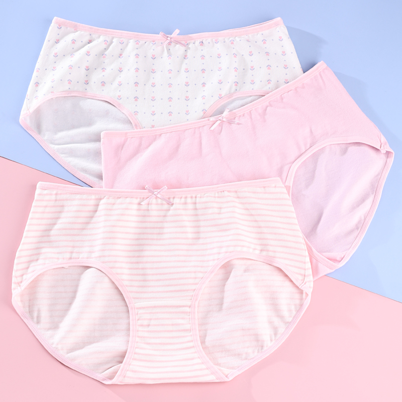 甜美可爱条纹弹力棉女生中低腰三角裤 三条装 蝶安芬女士全棉质内裤