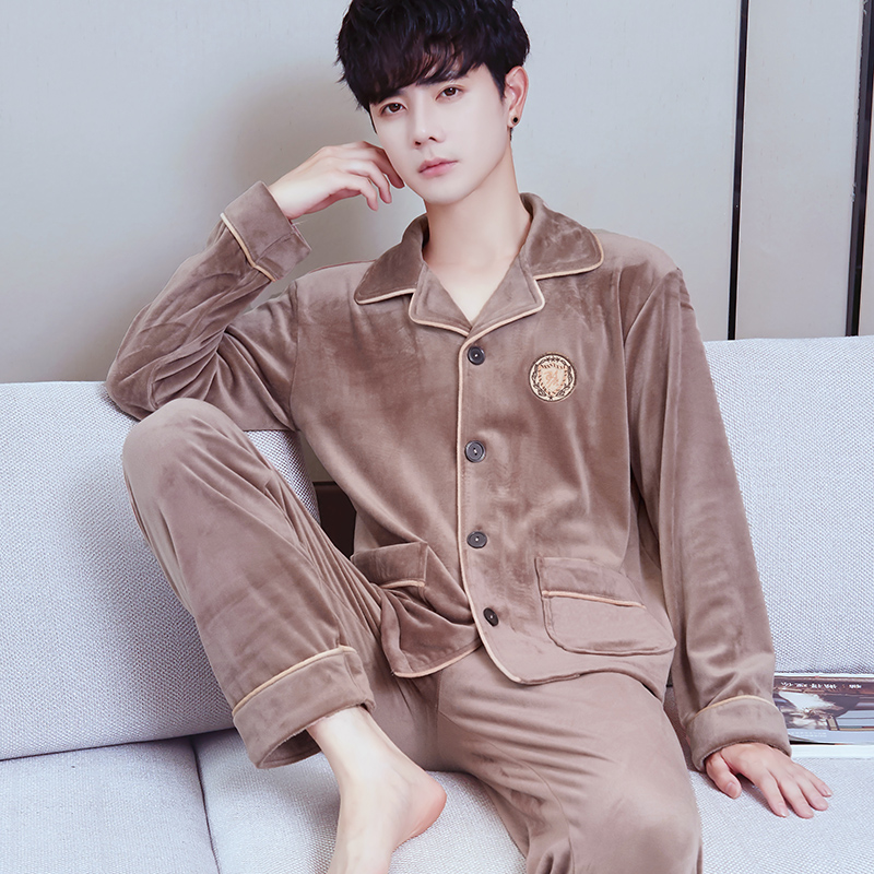 加厚长袖 家居服套装 保暖珊瑚绒海岛绒秋冬款 开衫 大码 睡衣男春秋款
