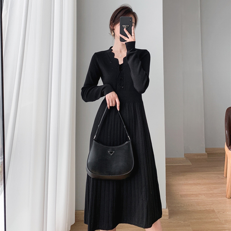 圆领罗纹修身 新款 喇叭形保暖休闲裙1294631 连衣裙2025秋季 HM女装