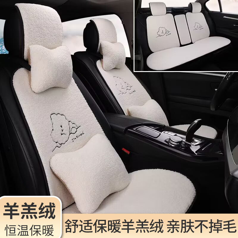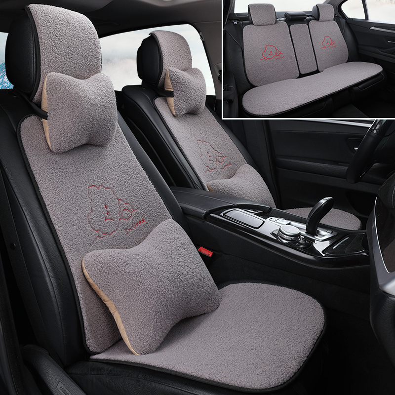 汽车坐垫冬季 羊羔毛绒坐垫保暖小蛮腰ins网红女神可爱通用座垫套
