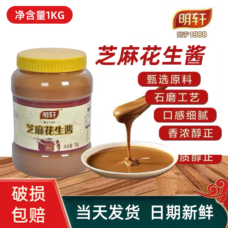 明轩芝麻花生酱火锅蘸料热干面专用凉拌面调味酱麻汁1kg瓶装 家用