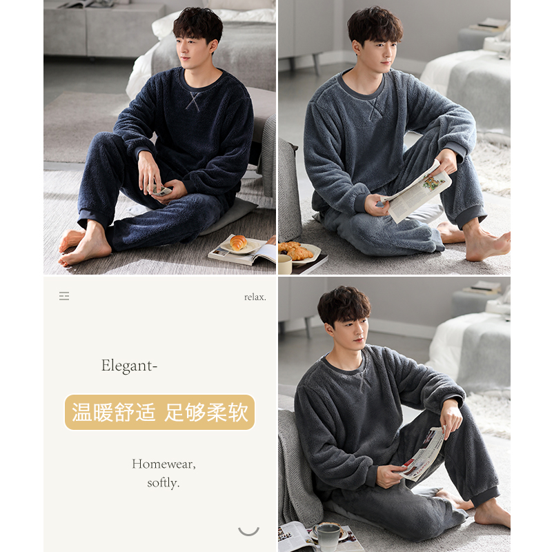 保暖珊瑚绒家居服套装 家乐芬男士 法兰绒加绒加厚款 冬季 睡衣秋冬款