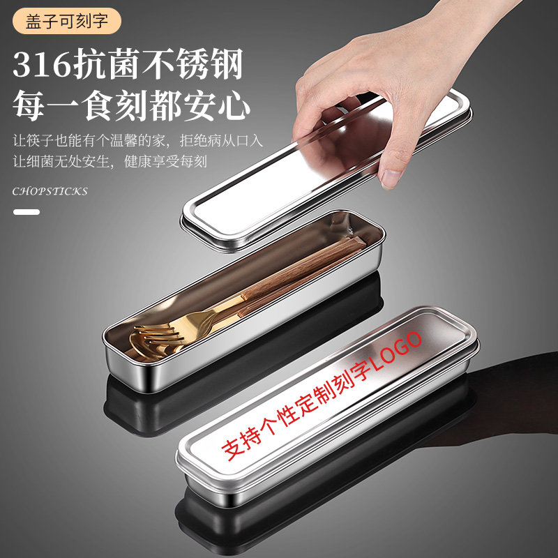 316不锈钢筷子盒便携盒消毒柜304餐具盒套装 学生刀叉勺子收纳盒
