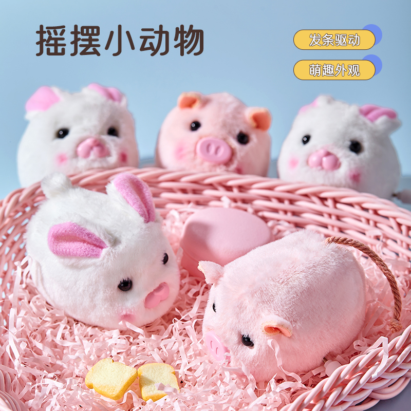 摇摆小动物毛绒儿童玩具发条上链上劲会跑 猪玩偶小兔子公仔链条