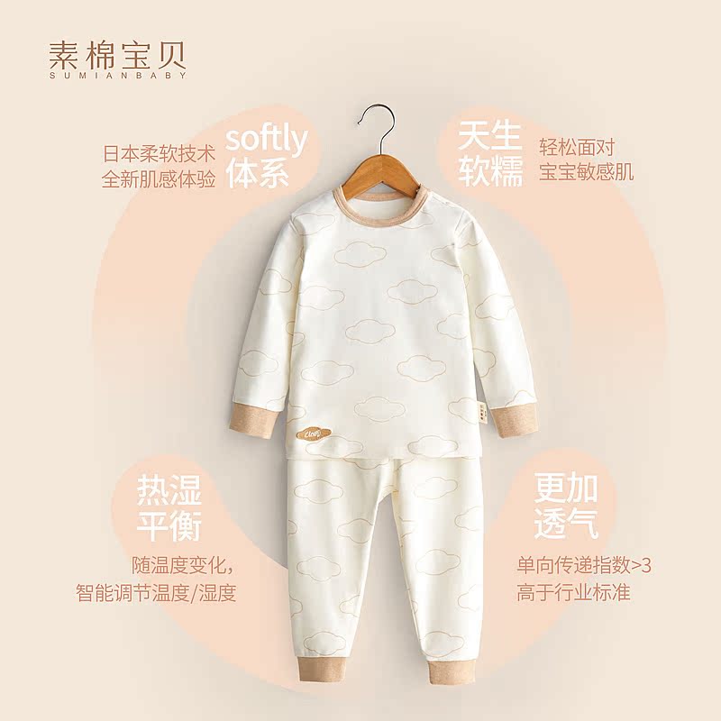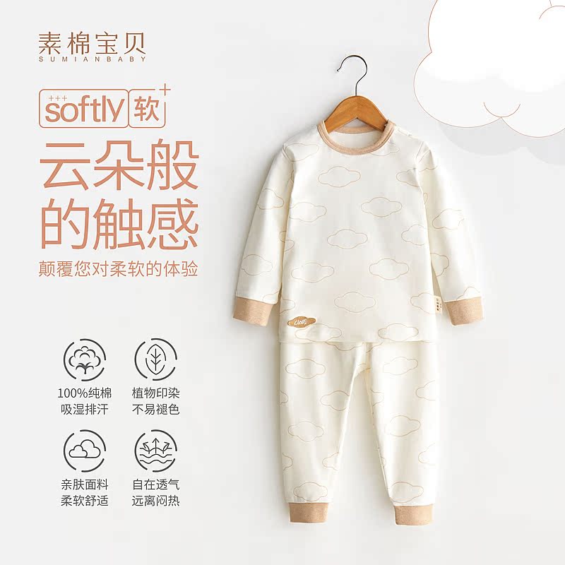 家居服睡衣 婴儿保暖内衣套装 素棉宝贝 春秋儿童秋衣秋裤