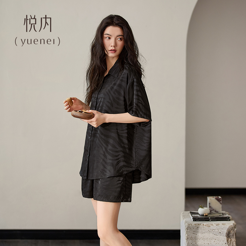 短裤 夏天冰丝绸短袖 家居服黑色轻奢高级感斑马纹 夏季 悦内睡衣女款