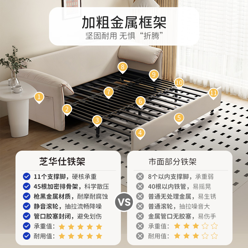 政府补贴芝华仕折叠沙发床一体两用小户型客厅伸缩布艺储物6305
