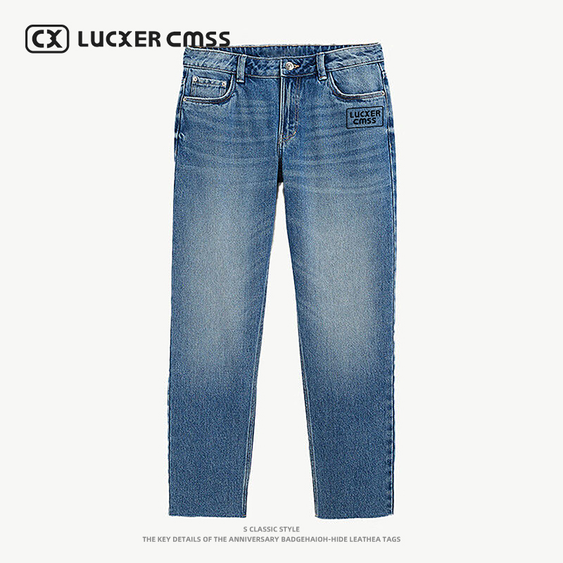 男女同款 LUKER CMSS高街潮牌休闲百搭宽松直筒牛仔裤
