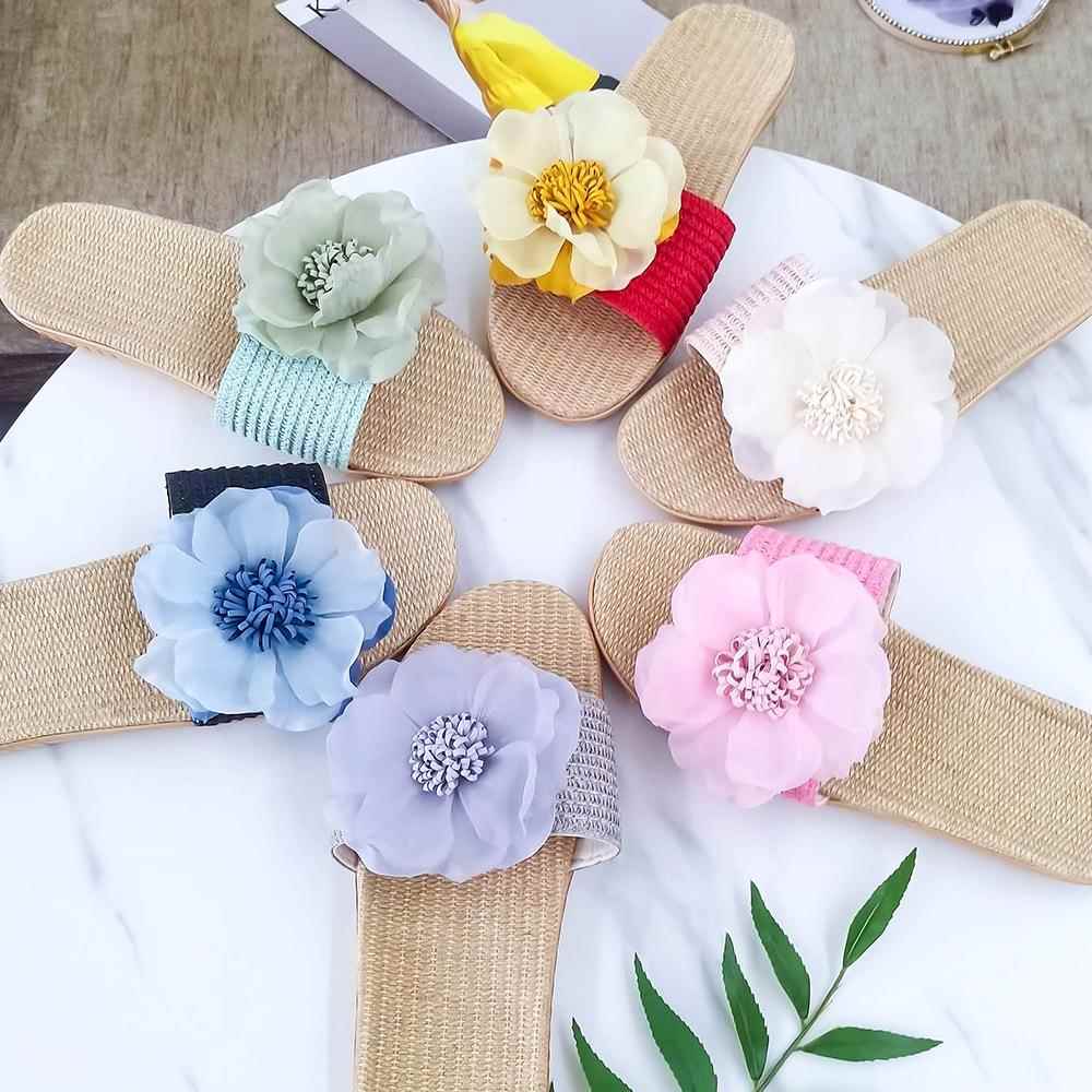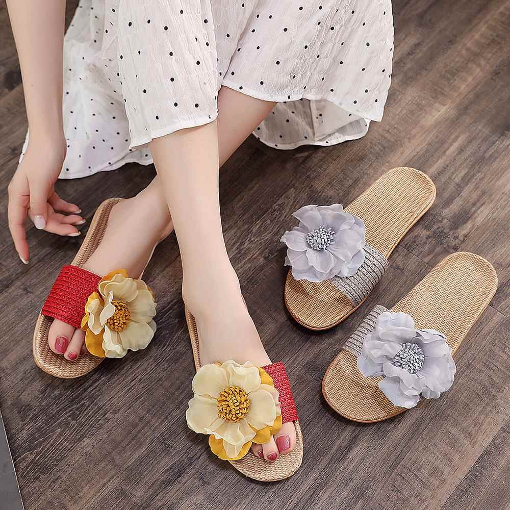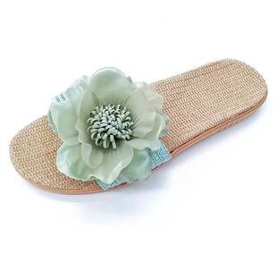 仙女风坡跟人字拖女夏季 凉鞋 时尚 沙滩鞋 草编花朵厚底傣族鞋 新款