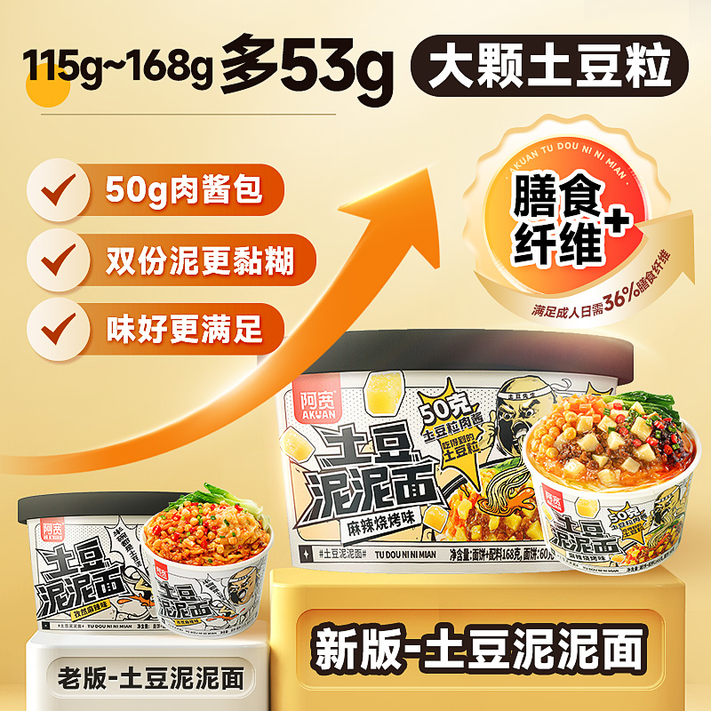阿宽土豆泥泥面拌面麻辣烧烤味泡面速食早餐宵夜方便面拌粉面条