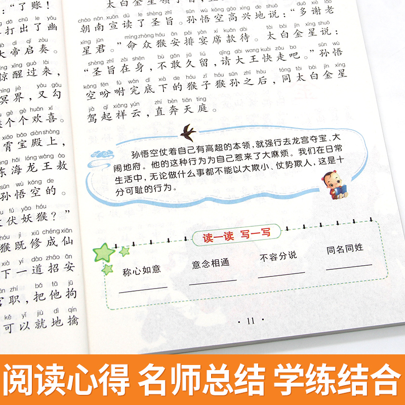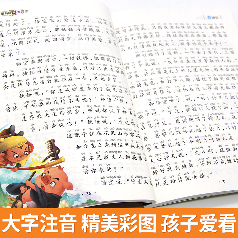 阅读课外书让孩子爱上阅读提升写作能力儿童睡前故事书推荐 儿童成长经典 必读课外书 大阅读名著西游记注音彩绘版 儿童文学太阳鸟经典