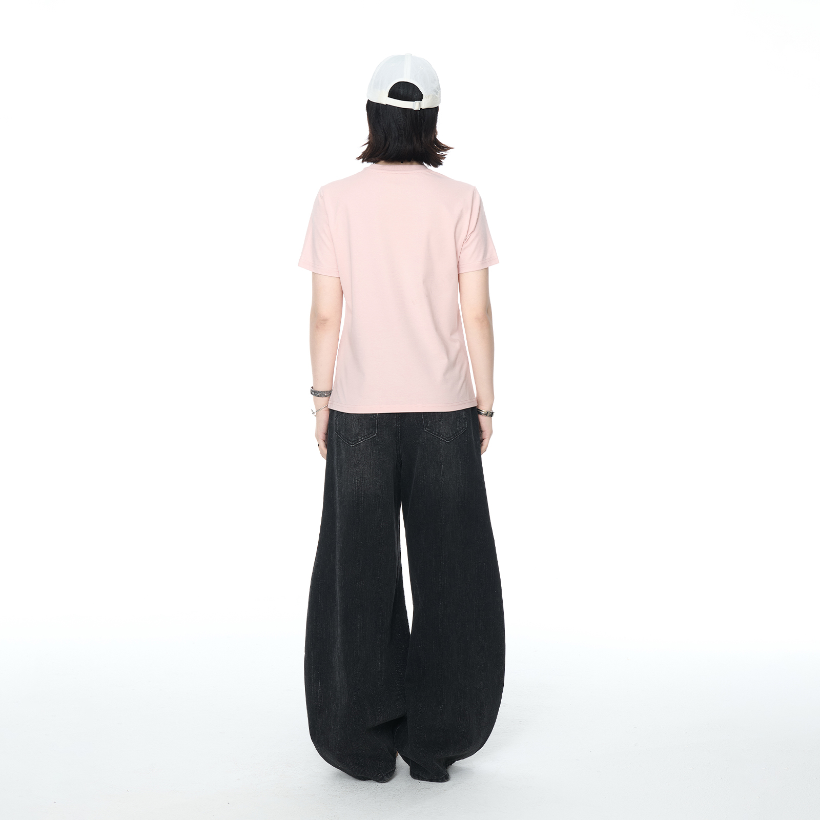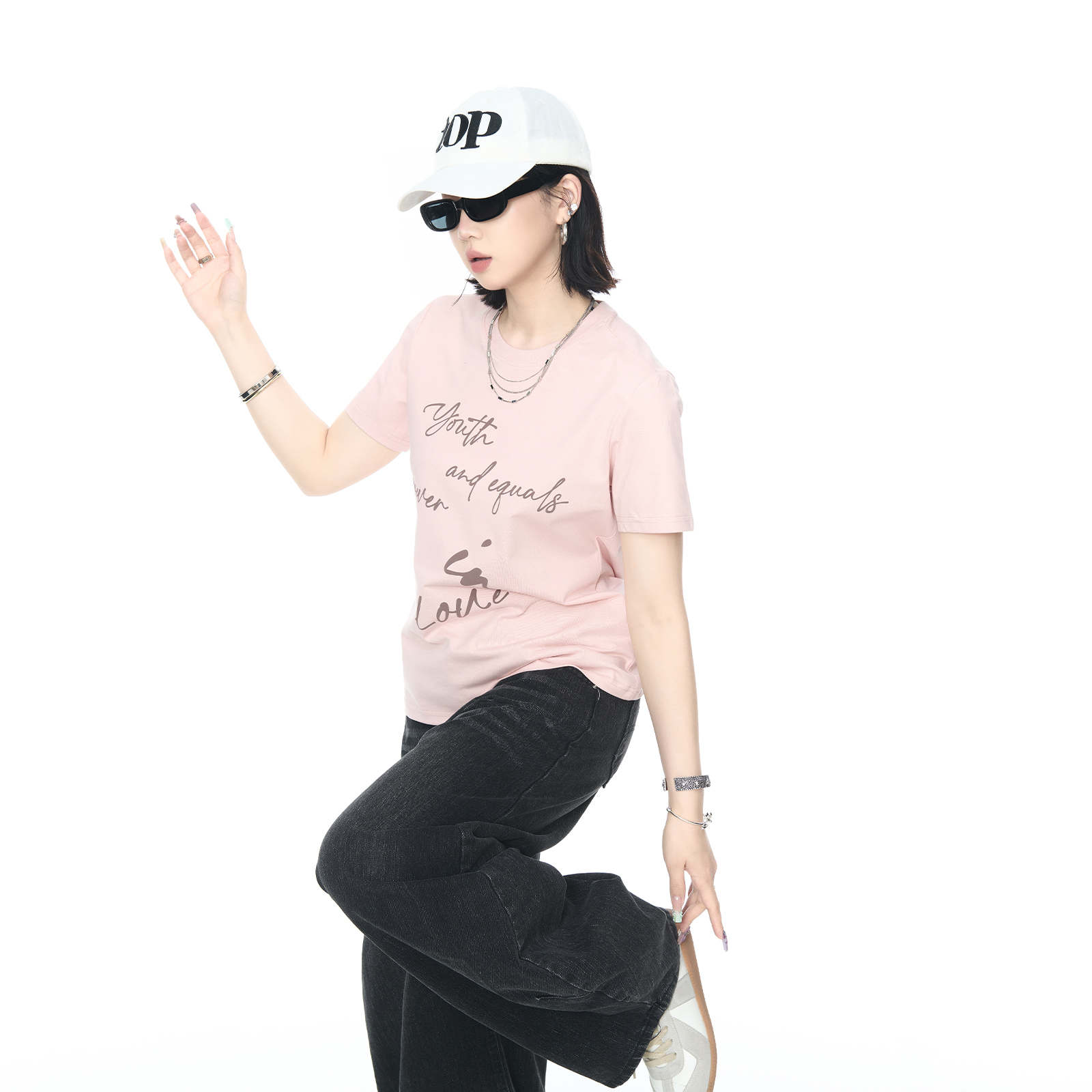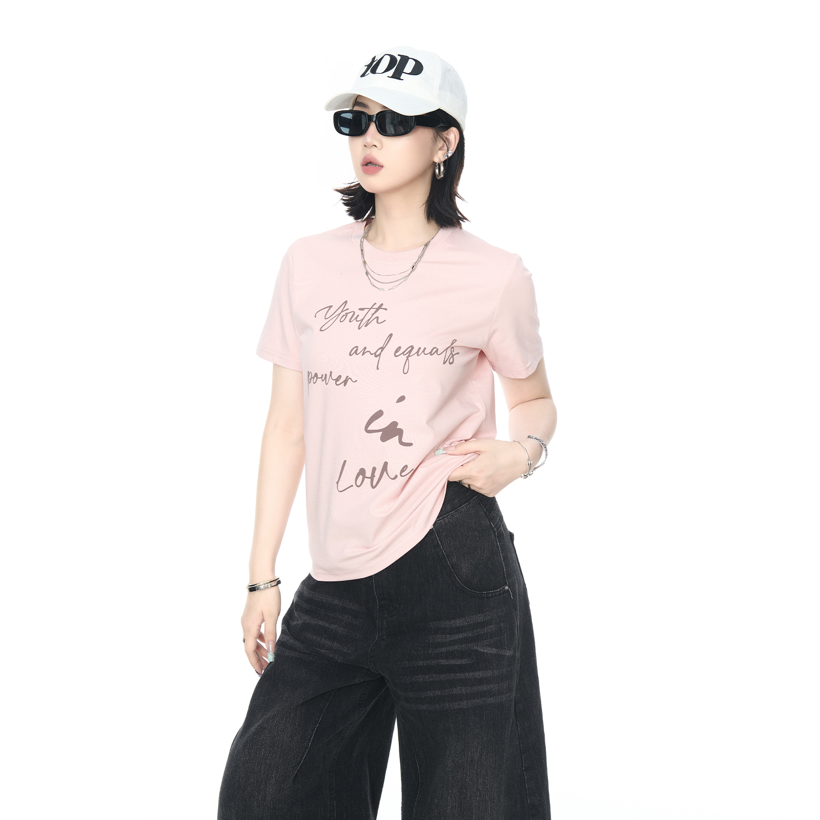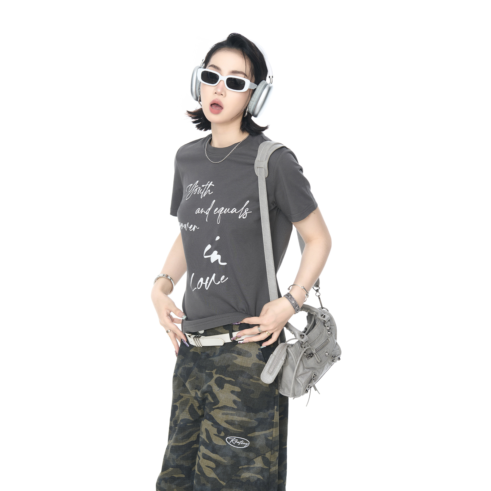 新款 半袖 正肩短袖 短款 上衣 T恤女发泡印花潮酷辣妹风修身 2025夏季