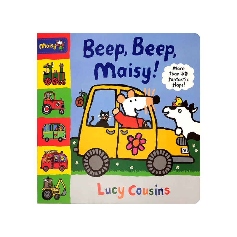 Maisy 英文原版 正版 小鼠波波翻翻书 进口英语图画故事书籍 Cousins Beep Lucy 大开本 绘本儿童启蒙交通工具认知纸板