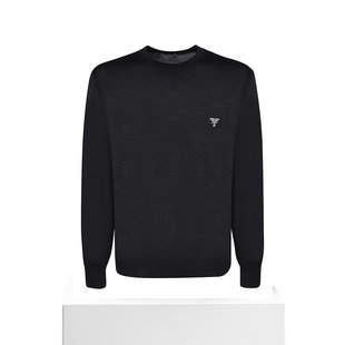 香港直邮潮奢 黑色羊毛徽标针织套衫 Prada 男士 普拉达 1h可退