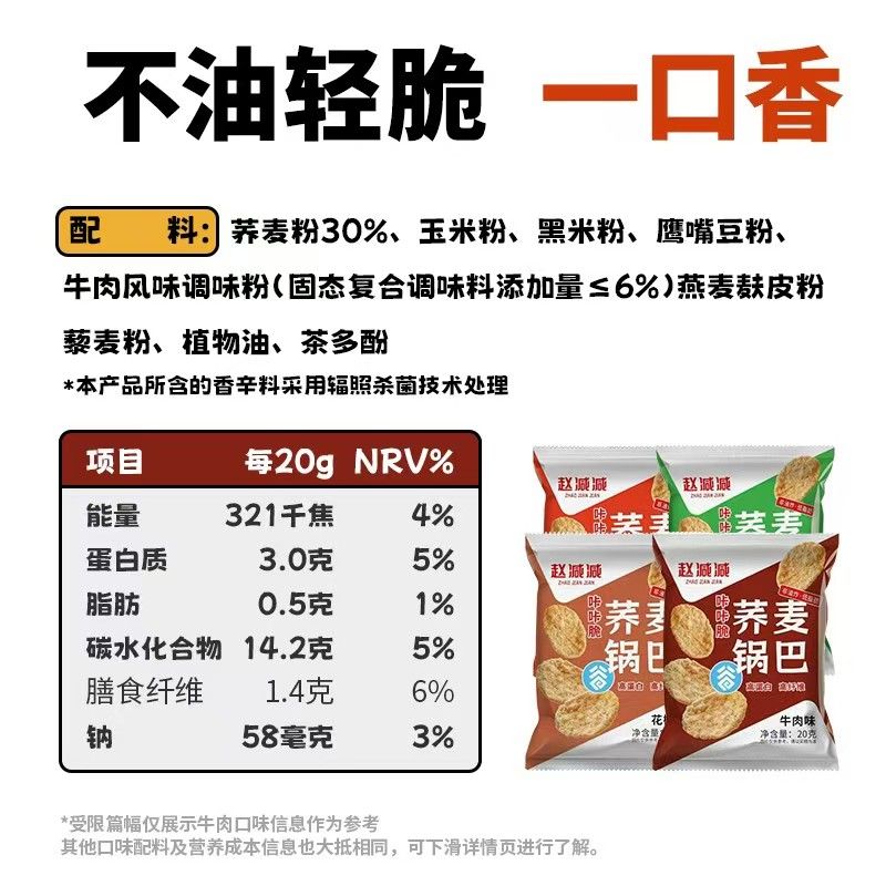 荞麦锅巴适合减期低0无糖精脂肪热量卡非油炸解馋粗粮小吃零食品
