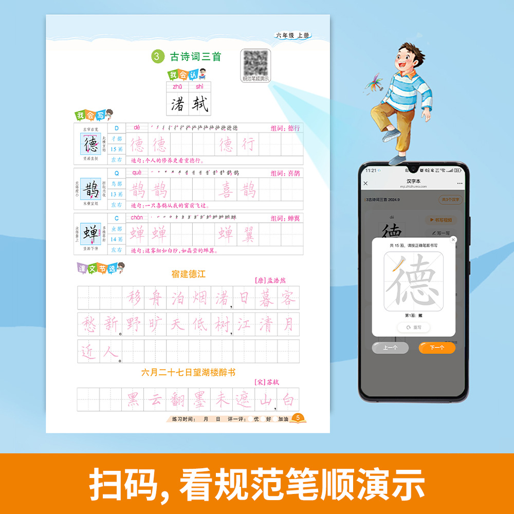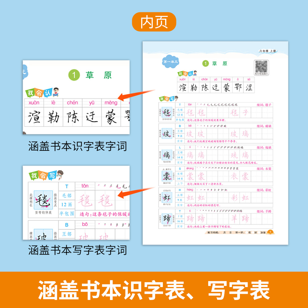 六年级上册练字帖人教版 小学六年级上下册语文同步练字帖写字课课练6年级课本生字同步练习下学期钢笔习字帖练字本 2025新版