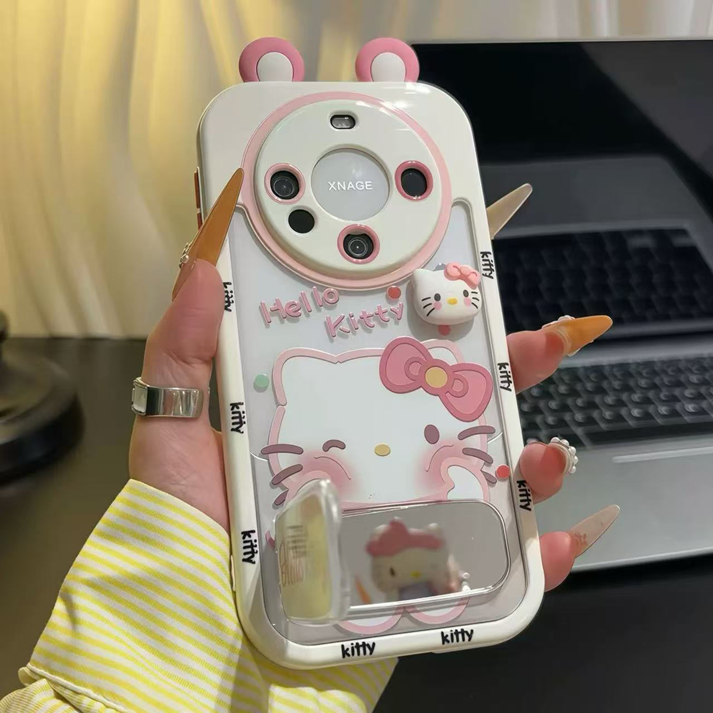 ins风Kitty猫星球波点磁吸支架适用苹果16Promax手机壳iPhone15Promax液态硅胶14Pro简约全包13 12防摔保护套