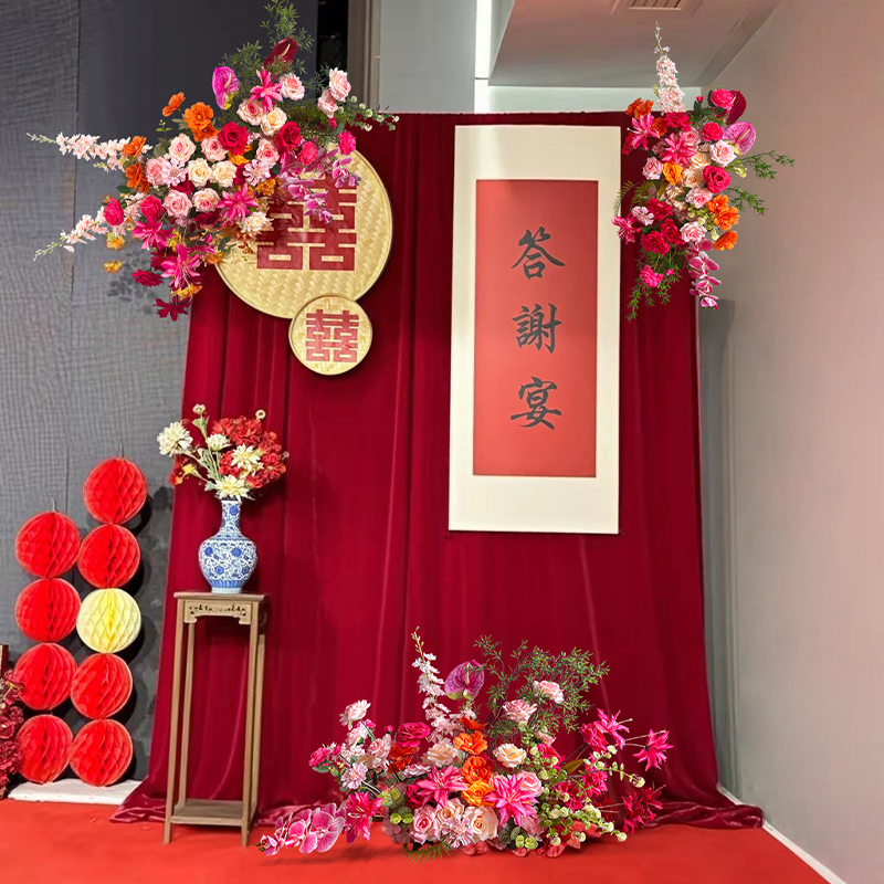 暖粉色花艺场景布置婚庆典礼活动地排花壁挂花排迎宾仿真绢花成品