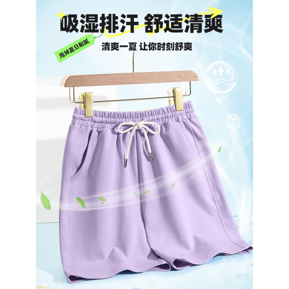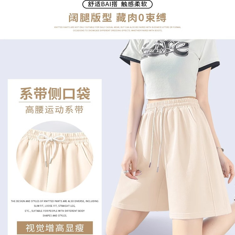 女2025新款 胖mm运动休闲五分裤 夏季 衩宽松大码 裤 回力奶杏色短裤