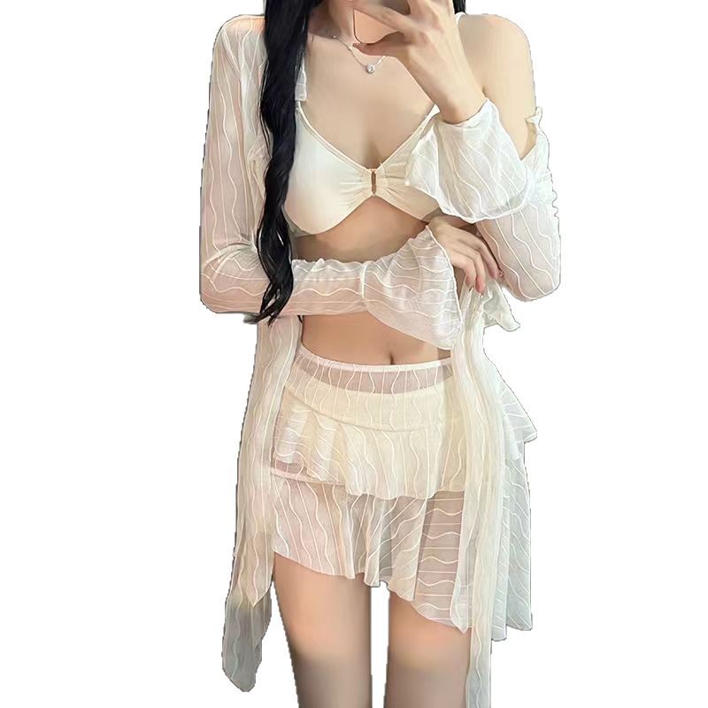 泳衣女高级感2025新款 度假泡温泉 比基尼保守遮肚四件套性感分体式