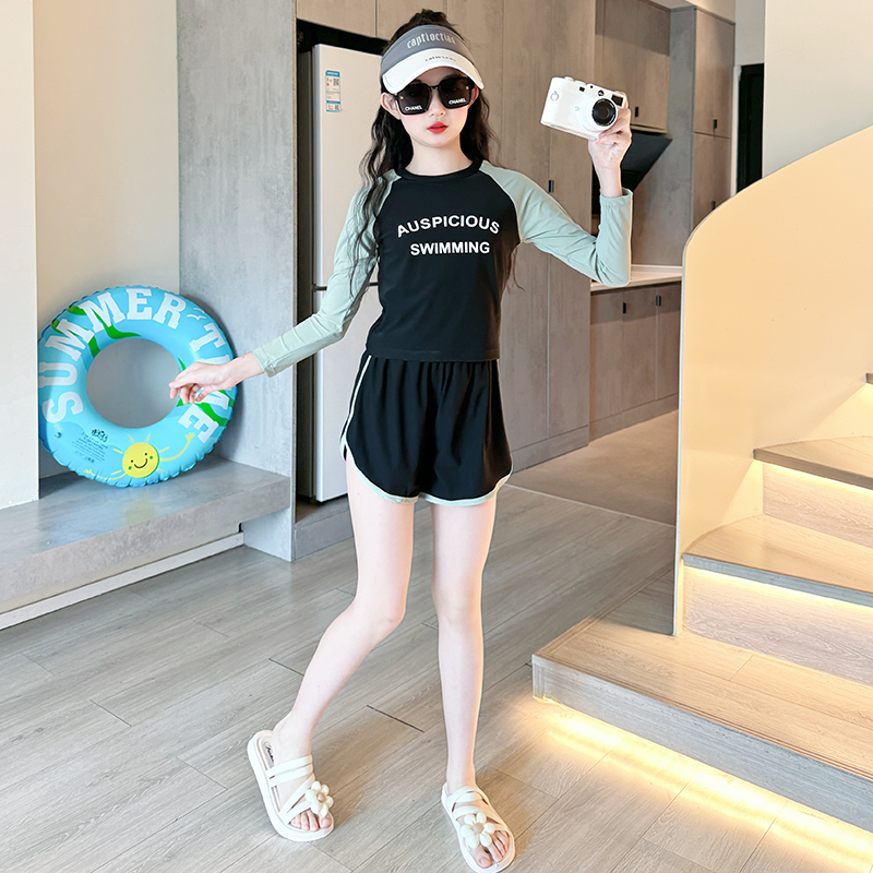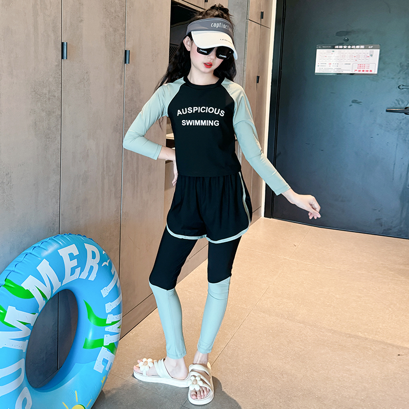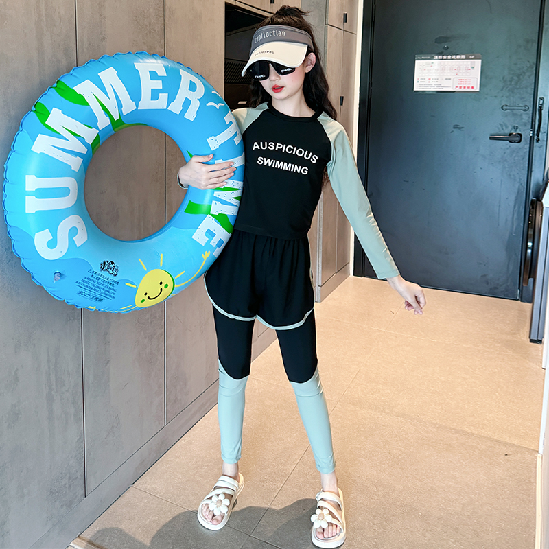 长裤 女大童长袖 防晒游泳三件套 儿童专业训练泳装 女童泳衣2025新款