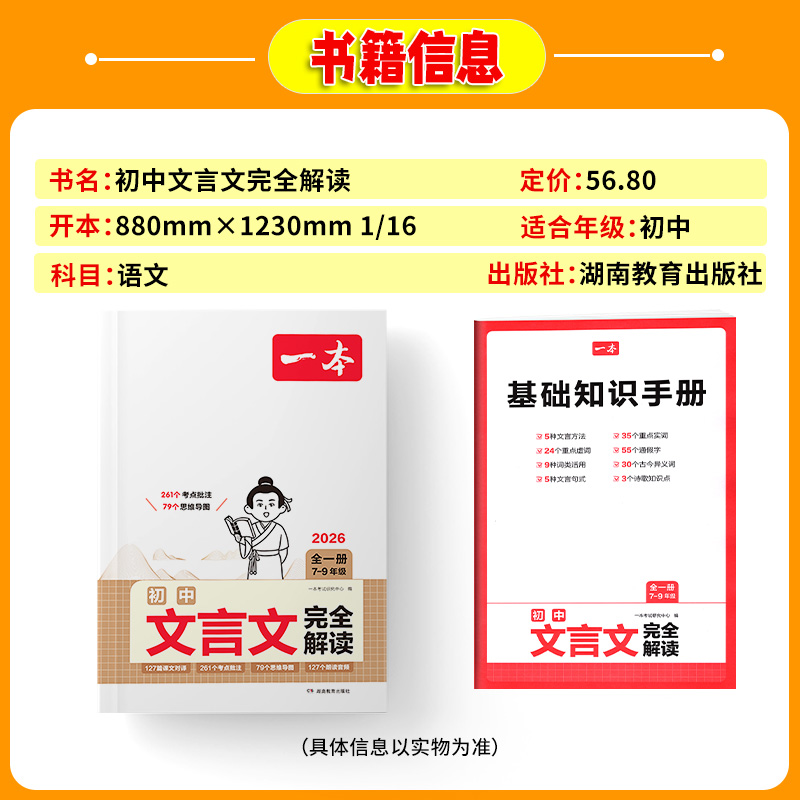 2026一本初中语文文言文古诗文完全解读七八九年级通用中考文言文一本古文人教部编版 初中文言文译注赏析789年级必背古诗文言文