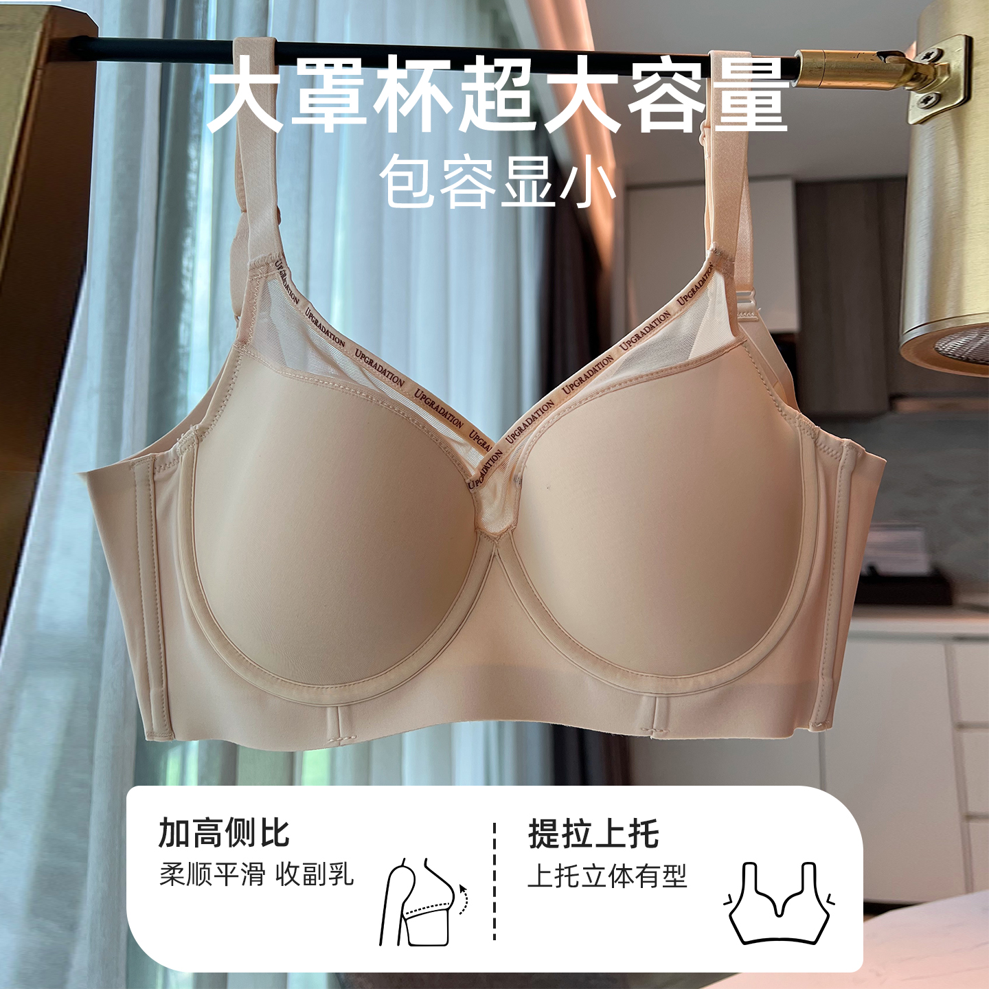 润微一拉薄大胸显小内衣女薄款 无痕前扣拉链提拉防下垂收副乳文胸