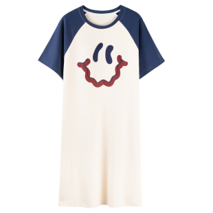夏天家居服睡裙 中长款 猫人女士纯棉睡裙夏季 带胸垫睡衣女休闲大码