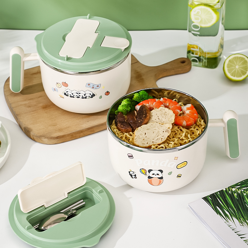 熊猫饭碗上班族个人专用可爱宿舍学生泡面碗可沥水食用不锈钢饭盒