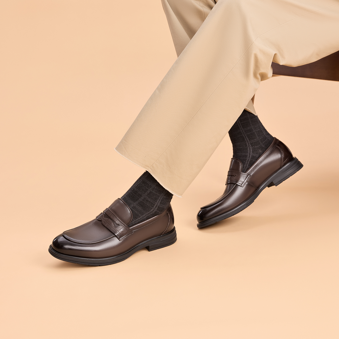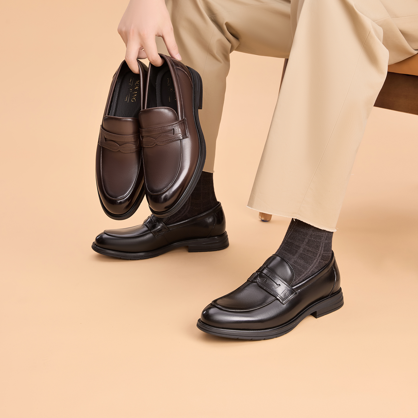 新品 2025秋季 商务休闲乐福鞋 时尚 奥康 百搭真皮套脚皮鞋 男鞋