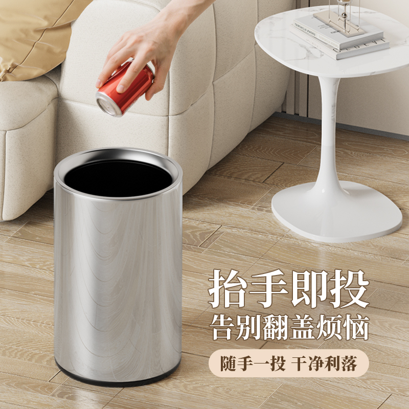 JF圆型不锈钢垃圾桶家商用双层简约酒店办公室厨房客厅卫生间轻奢