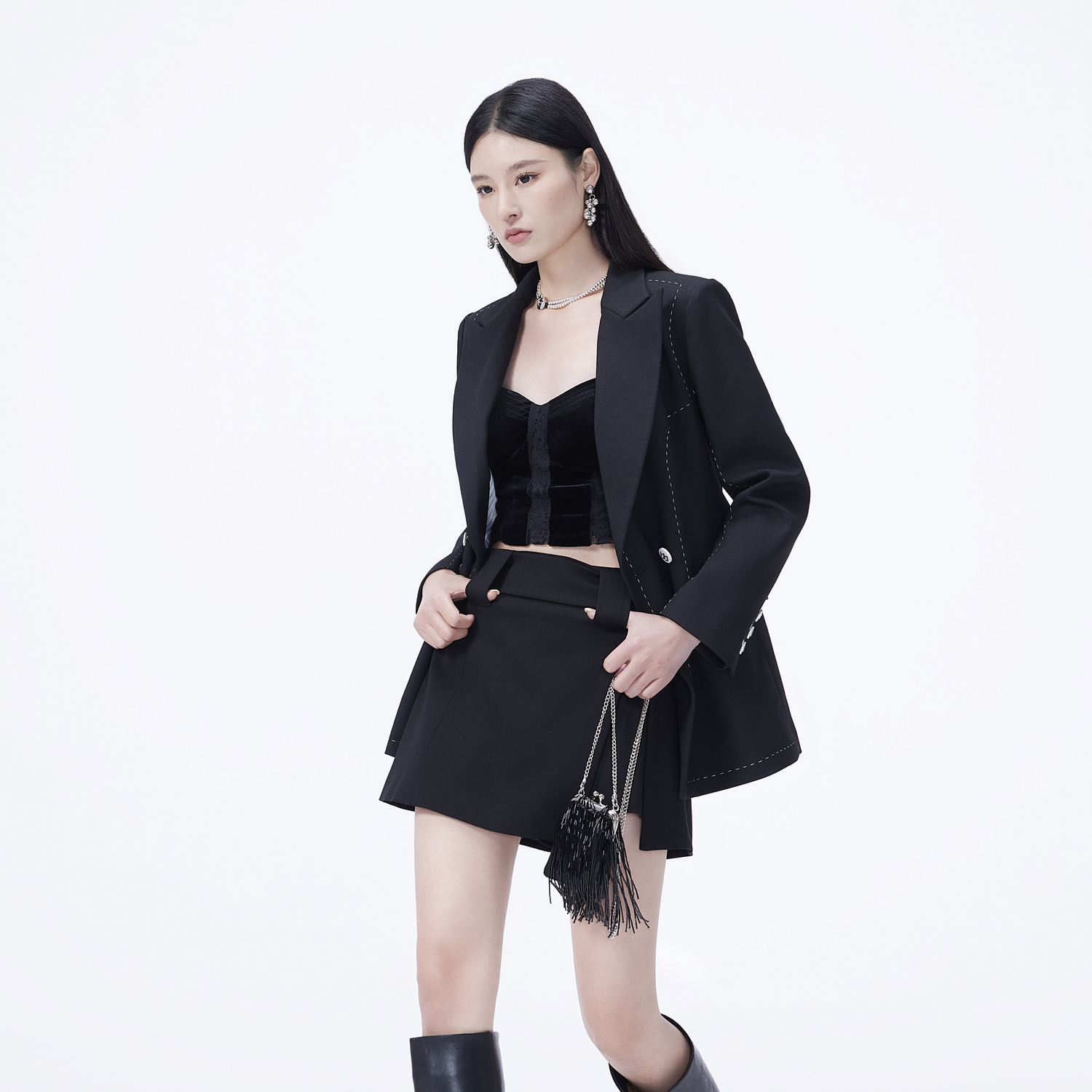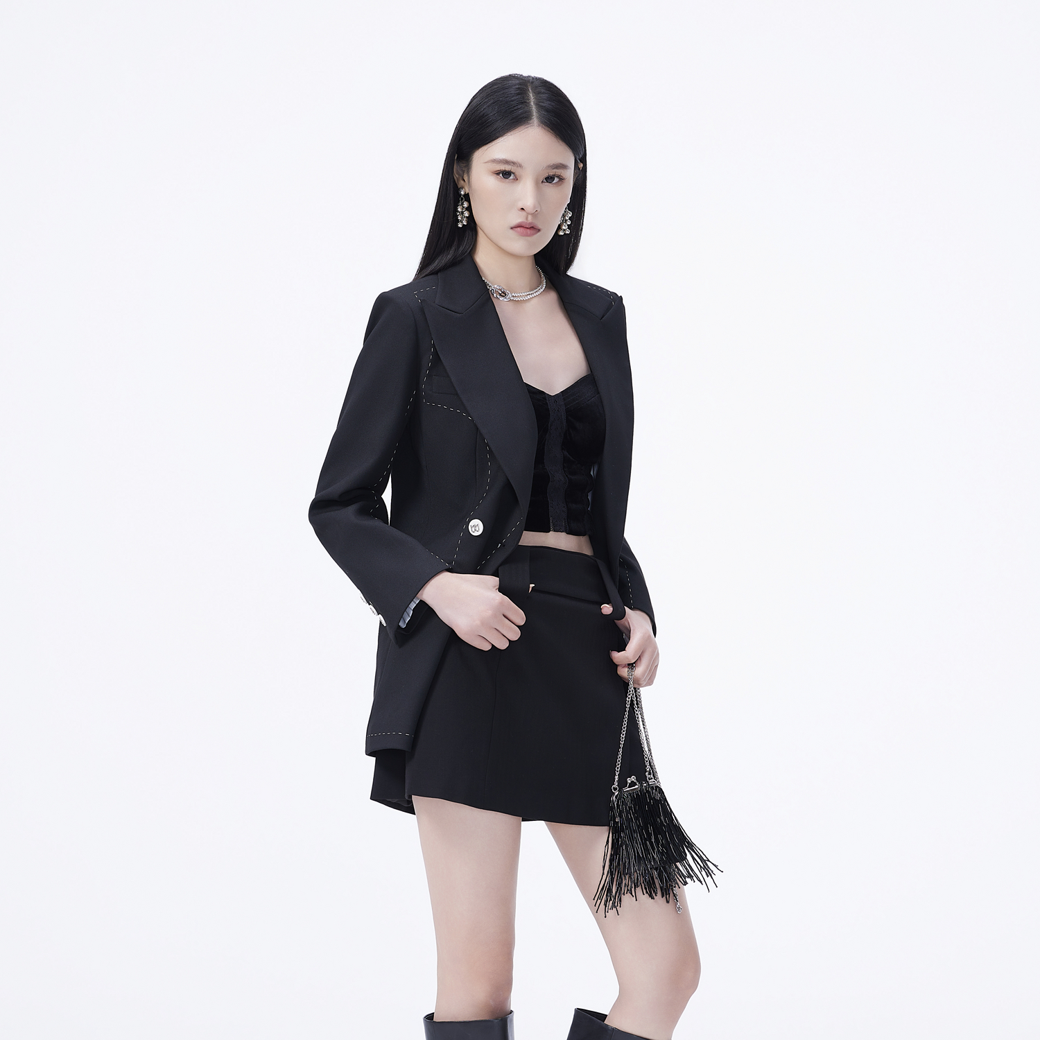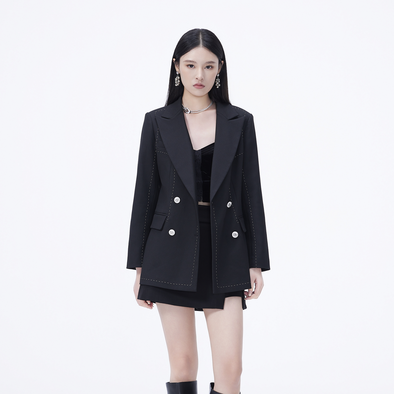 撞色设计感中长款 依妙EMU气质通勤西装 外套女2025秋装