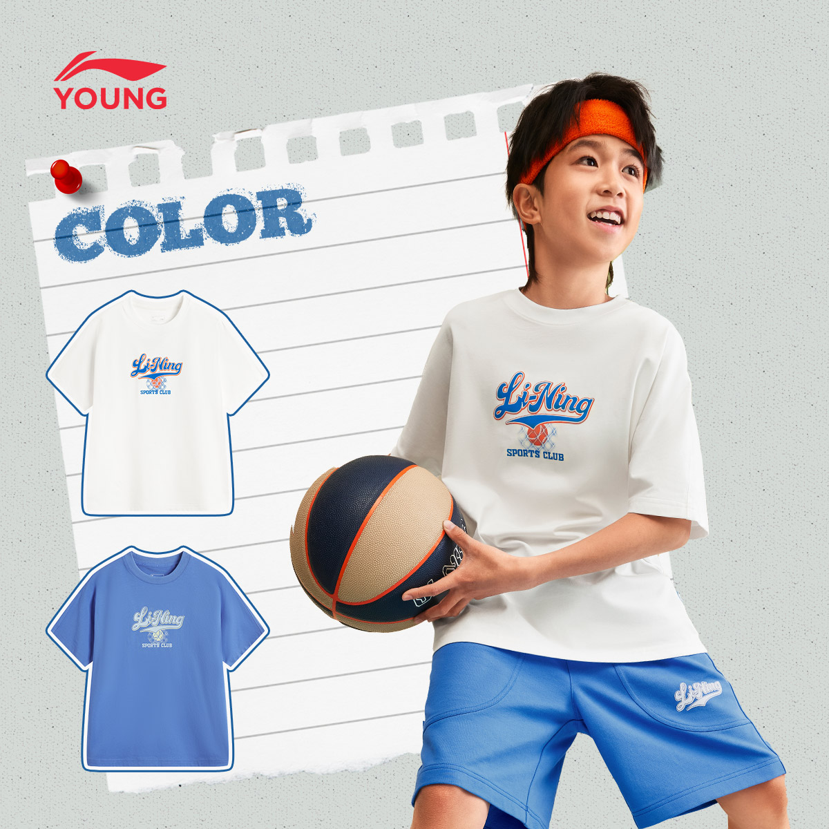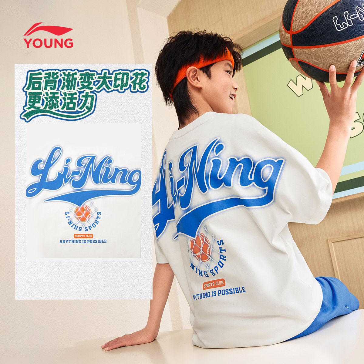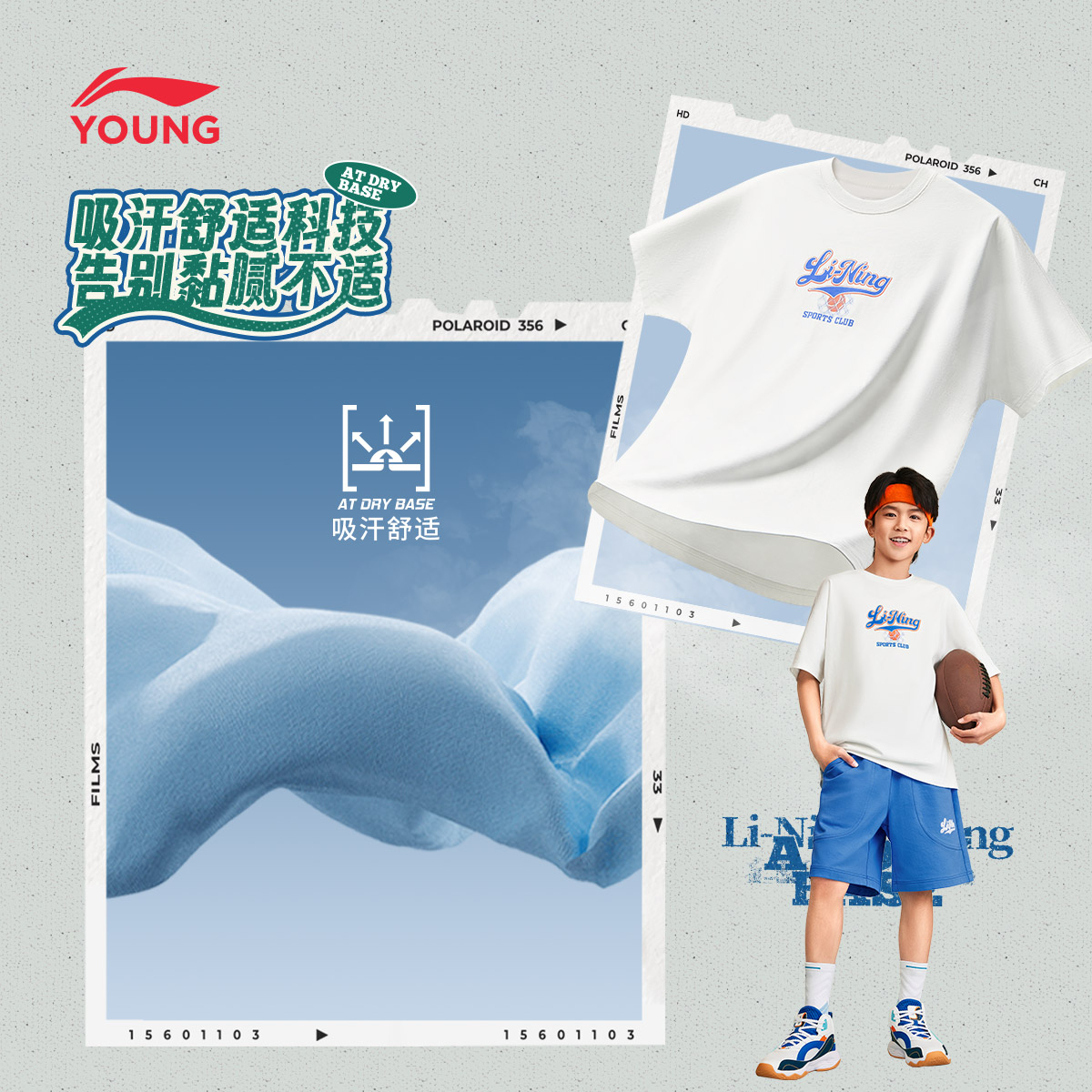 夏装 李宁童装 吸汗舒适干爽t恤宽松夏季 T恤男女小大童2025新款 短袖