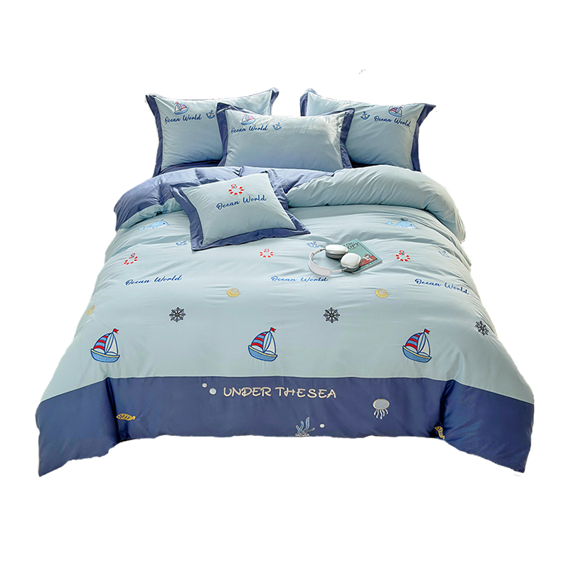 男孩儿童床上用品全棉床单被套可爱卡通100纯棉四件套1.5床笠蓝色