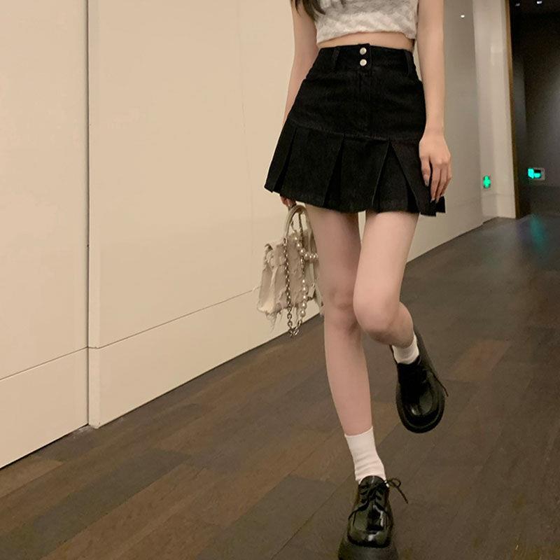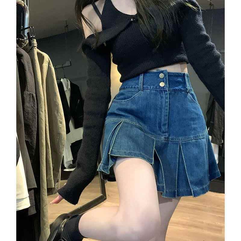 高腰牛仔短裙女甜辣小个子荷叶边百褶裙子2025新款 显瘦包臀裙时尚