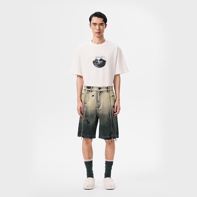 复古扎染短裤 夏季 新款 摩朝美式 微胖子中裤 男士 潮流宽松五分裤 大码