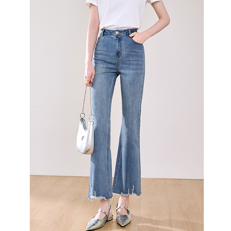 小个子九分裤 betu百图设计感毛边微喇裤 新款 2025年夏季 女牛仔裤