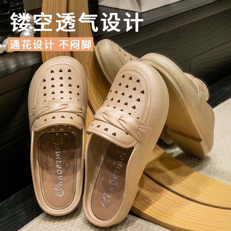 软底增高包头外穿拖鞋 夏季 防滑厚底不臭脚女 女士踩屎感新款 洞洞鞋