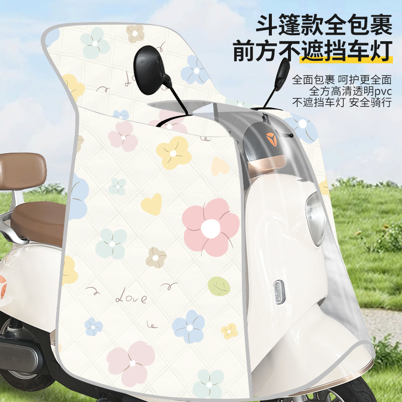 通用 电瓶摩托防风防水罩四季 电动车挡风被冬季 加绒加厚全包斗篷式