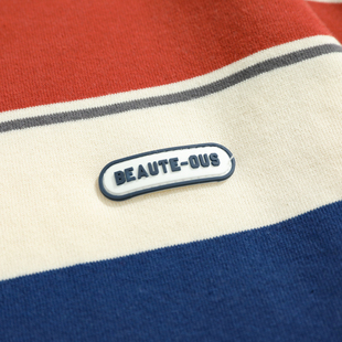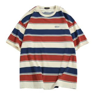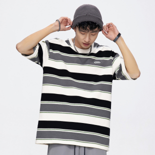 新款 D4真维斯男装 2025夏季 T恤 港风休闲拼色条纹圆领套头上衣 短袖
