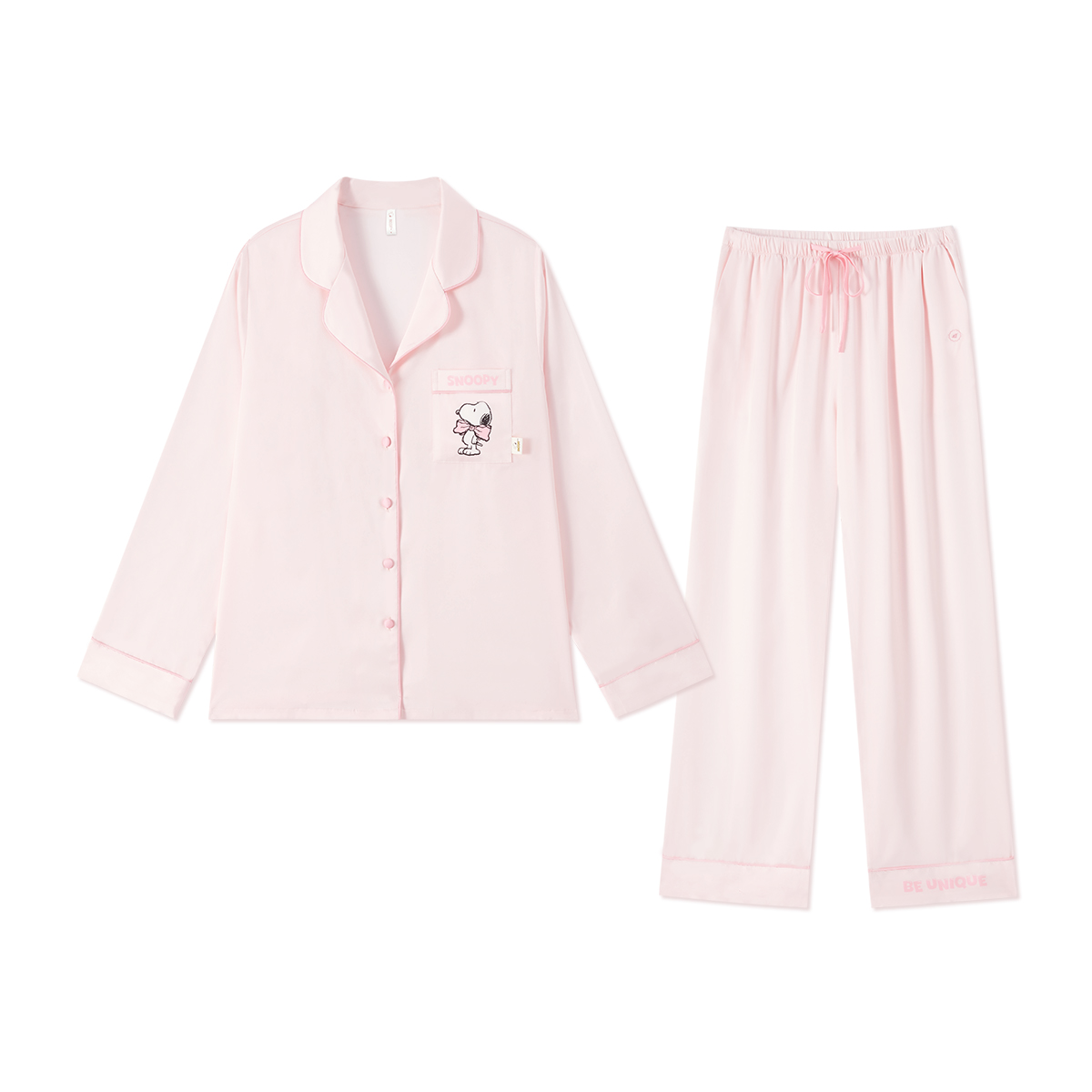 带胸垫家居服套装 防凸点丝绸秋天长袖 秋冬 秋季 史努比冰丝睡衣女款