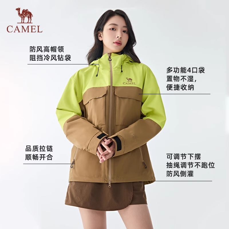 骆驼冲锋衣2025春秋新款 三合一男女暴雨级防水旅行夹克新登山服
