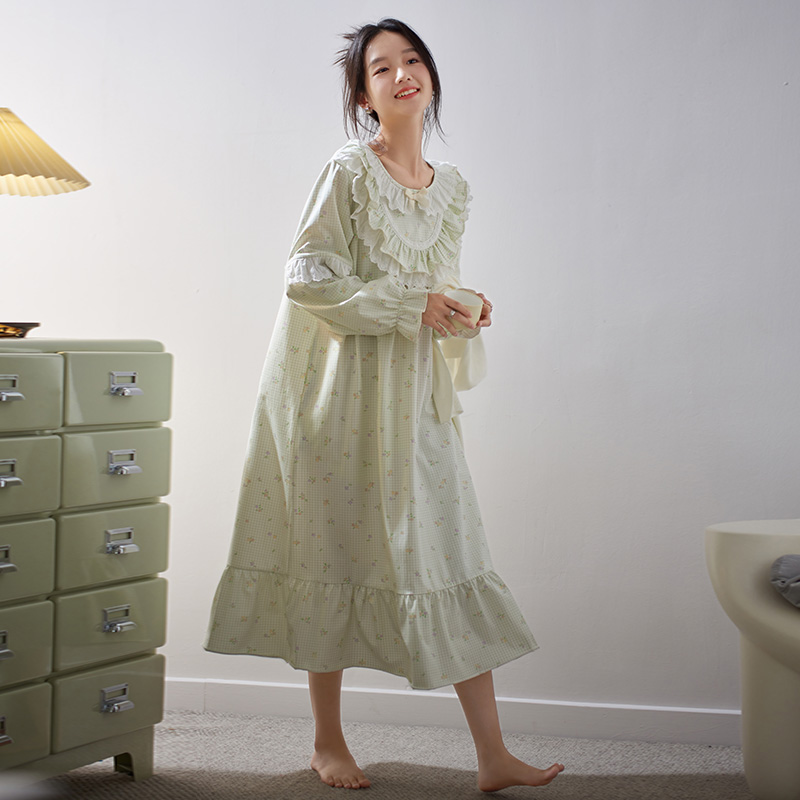 幸棉法式 睡裙女秋超仙睡衣家居服露背高级感连衣裙宽松长裙子 长袖